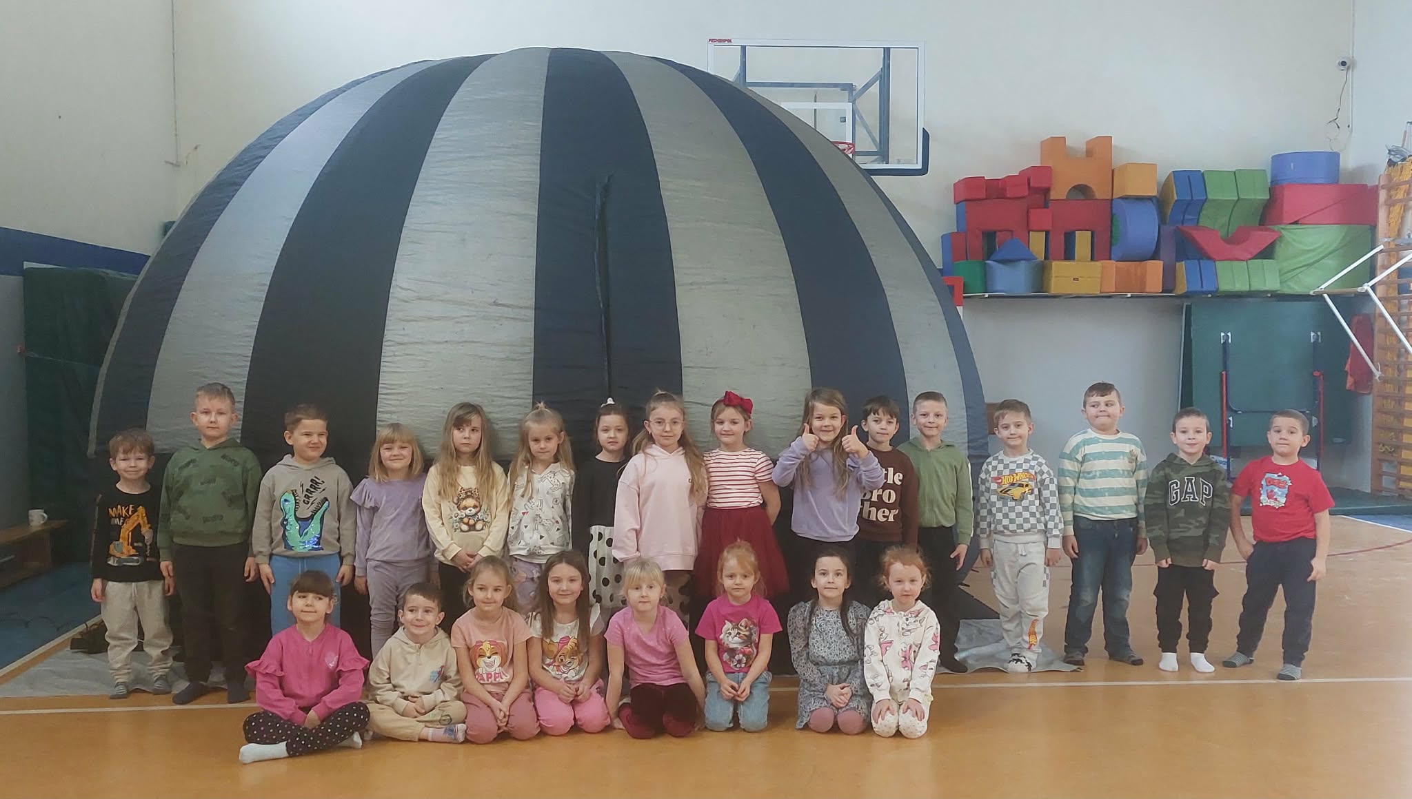 9 stycznia nasze przedszkole odwiedziło „ Mobilne Kino sferyczne”. Było to fascynujące doświadczenie. Dzieci w środku kopuły, zostały przeniesione w niezwykły świat. Każdy w skupieniu i z zaciekawieniem oglądał bajkę. Wyświetlane bajki były o podwodnym świecie oraz o porach roku. W ten sposób przedszkolaki pogłębiały swoją wiedzę, a przy tym dobrze się bawiły.