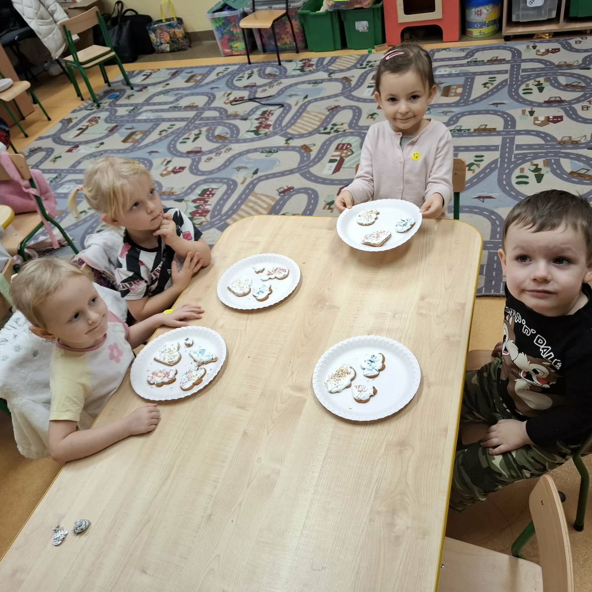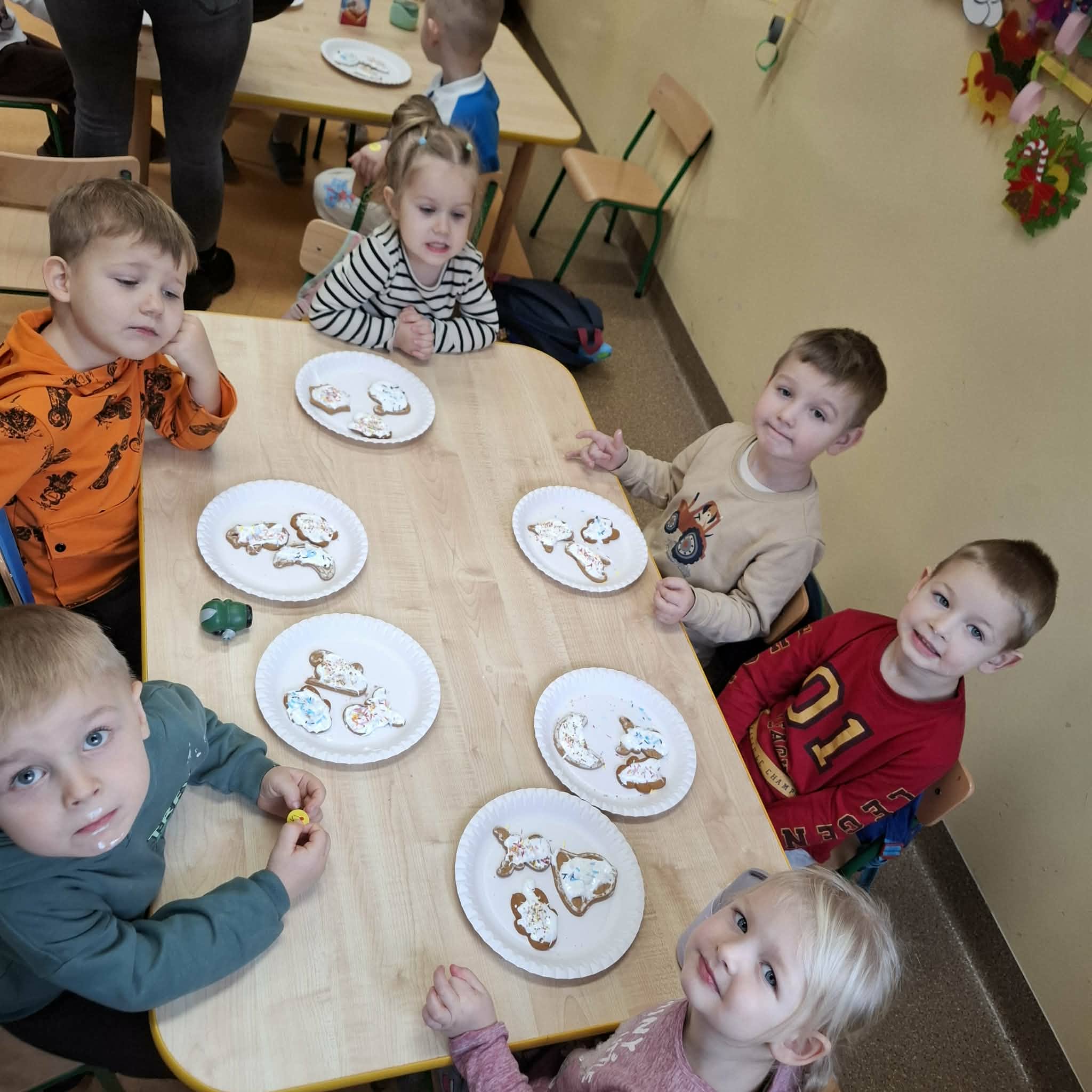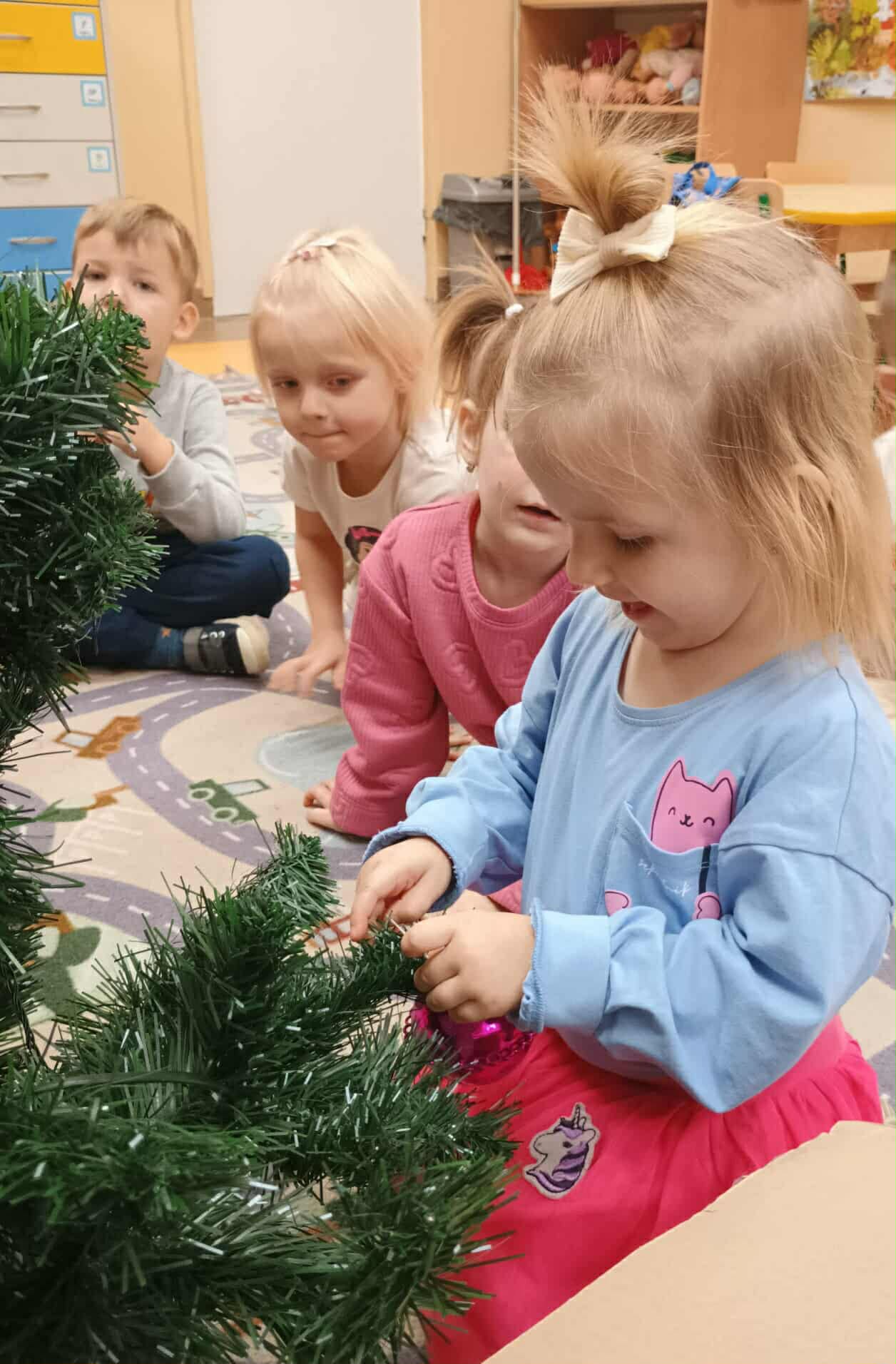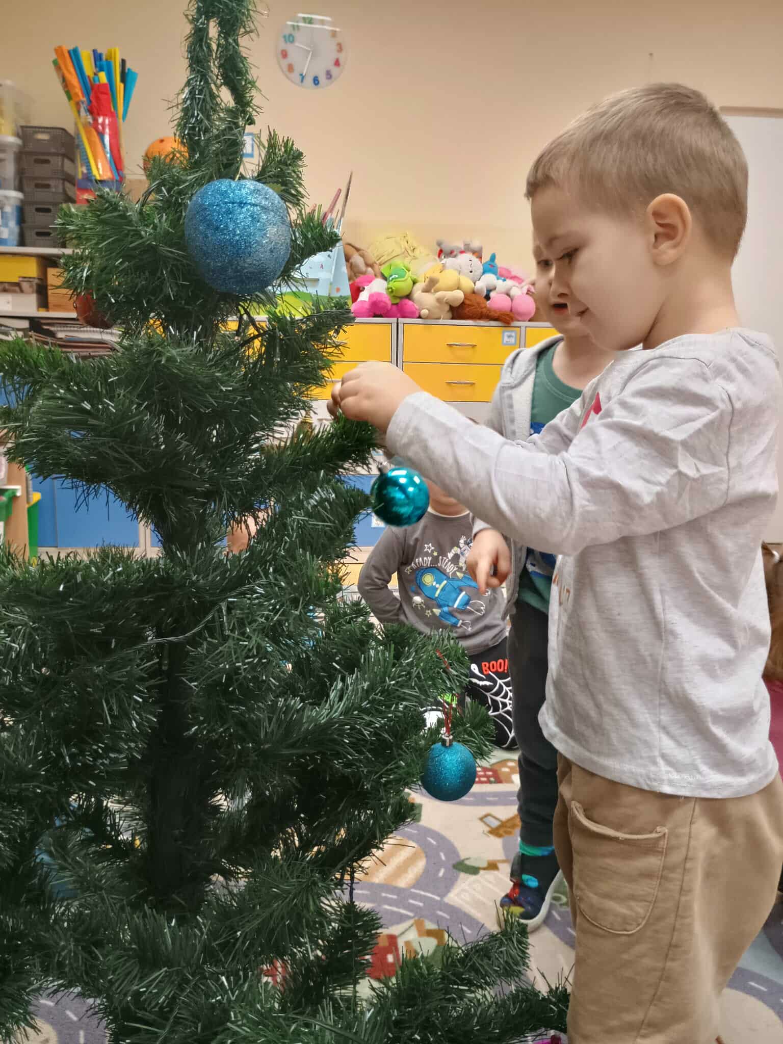 Przygotowania do Świąt Bożego Narodzenia to bardzo ekscytujący i zarazem pracowity tydzień w życiu przedszkolnym. Na samym początku dzieci zabrały się za ubieranie choinki, nie tylko w gotowe ozdoby, ale również w samodzielnie przygotowane przez sobie papierowe łańcuchy. Nie zabrakło również pięknie udekorowanych pierników, których zapach wypełnił całą salę. Zakończenie tygodnia posumował turniej Mikołajkowy w sportowym wydaniu. To był pracowity, a zarazem wspaniały tydzień na który czekaliśmy cały rok.