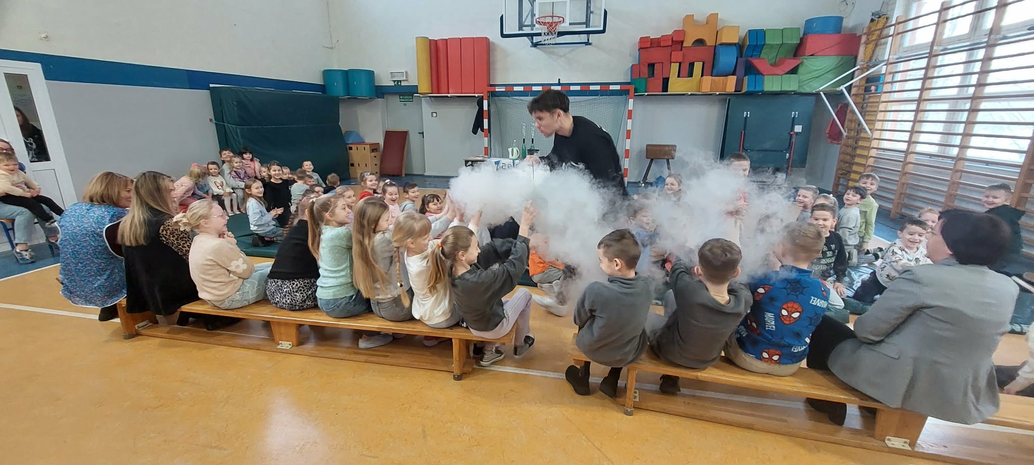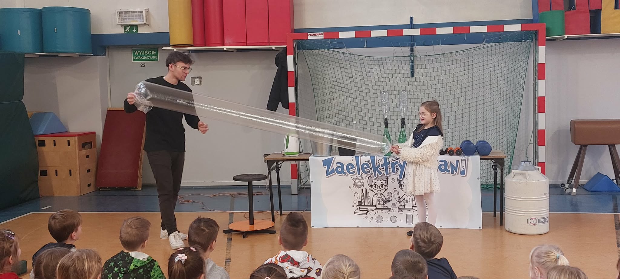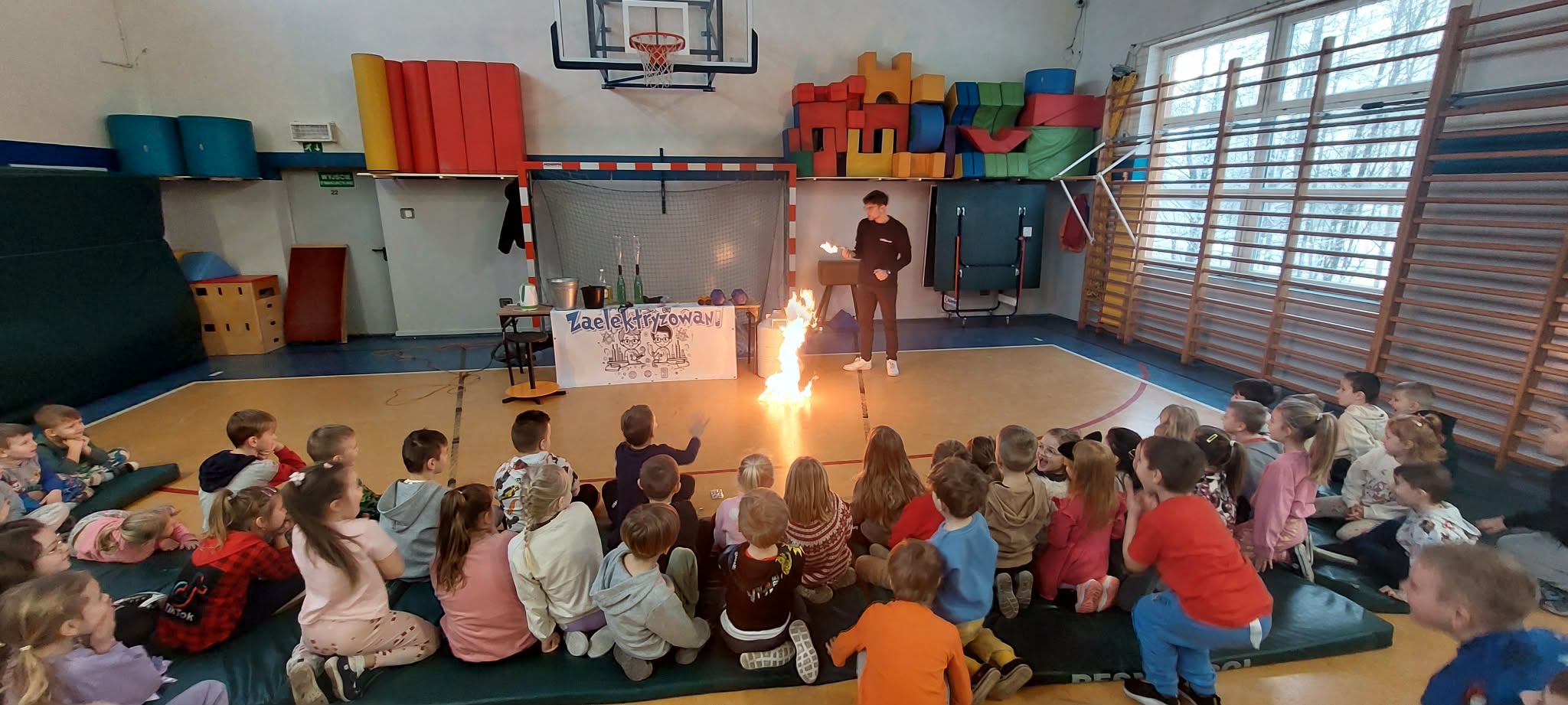 14 stycznia do naszego przedszkola przyjechała grupa Zaelektryzowani. Dzieci uczestniczyły w pokazie edukacyjnym, łączącym fizykę, chemię i dobrą zabawę. Animatorzy prezentowali ciekawe eksperymenty, taki jak: doświadczenia z helem, grawitacją , ciekłym azotem. Chętne osoby mogły wziąć udział w doświadczeniach dobrze się przy tym bawiąc.